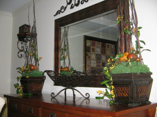 On the buffet behind the dining table are a pair of obelisk centerpieces I used again for the “Ap-Pear-ently Autumn” tablescape.
