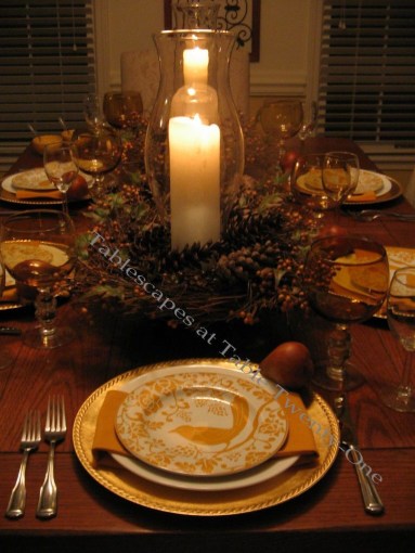 This is the first of many autumn tablescapes to come. This season will feature everything from soft and subdued (tonight), to haunting beauty (Halloween), to sheer elegance. The rich hues of the season allow for so many decorating opportunities, and I look forward to sharing a few of my interpretations with you! And just so you know, I’m not real big on Halloween, but this year I’m going to give it a try just the same!