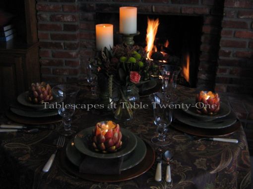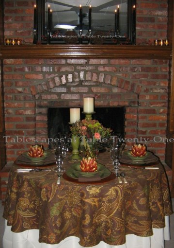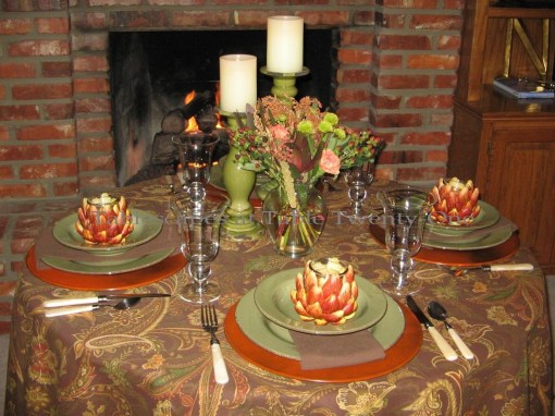 I thought it would be kind of fun to put a faux artichoke votive holder at each place setting.
