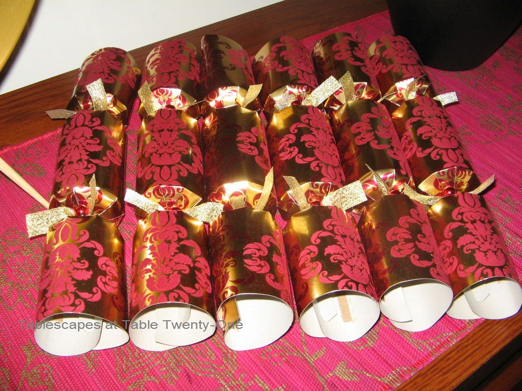 Firecrackers are a big part of the Chinese New Year celebration. Lee’s Summit city ordinance prohibits the use of firecrackers within city limits (AND it was WAY too cold out!), so these English crackers were a fine indoor substitute! I bought them at the end of the Christmas season at…where else?…Pier 1. The red & gold colors made them perfect for this event!
