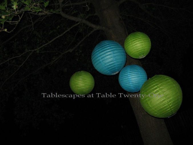 I just love the lanterns. We just got back from Girl’s Camp for our church and we had a Princess theme – we had them paint there own battery operated lanterns and they used them during our “Singing in the trees” and lifted them up high and turned them off! It was like Tangled!!!! They make such a fabulous party statement. I am planning to do a table with them (if I get around to it!) I love the colors – so pretty!