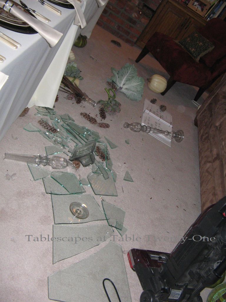 12. Alycia, this is a huge tragedy. It looked so amazing. So glad no one was hurt. So sorry it happened to you at this time. Your creative spirit will come up with something that will wow your guests. Just remember that the fellowship is equally as important as the treat for the eyes. You are blessed to have so many people to grace your table. Still sorry though.. that is a lot of glass! Happy Thanksgivings.. xo marlis
