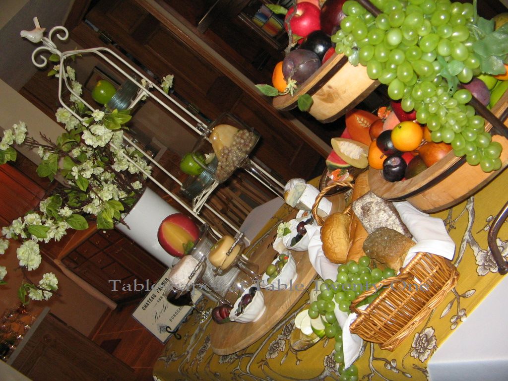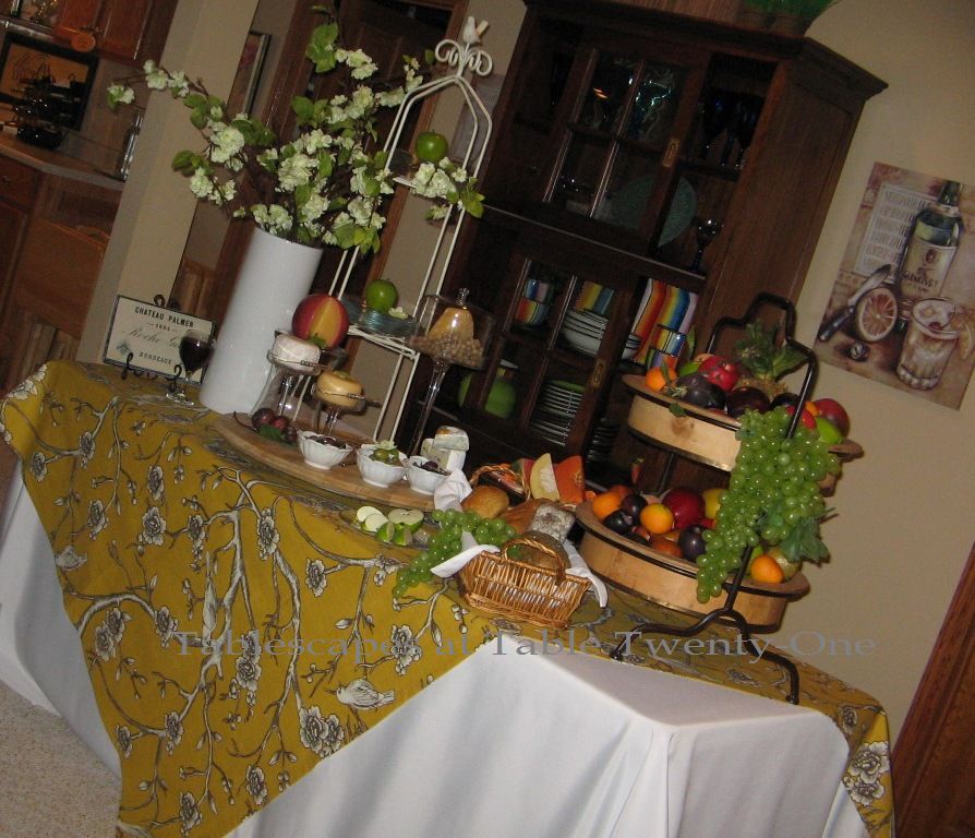 What a lovely table full of food! I don’t drink wine but all those fruits were yummy looking and gave me great ideas!