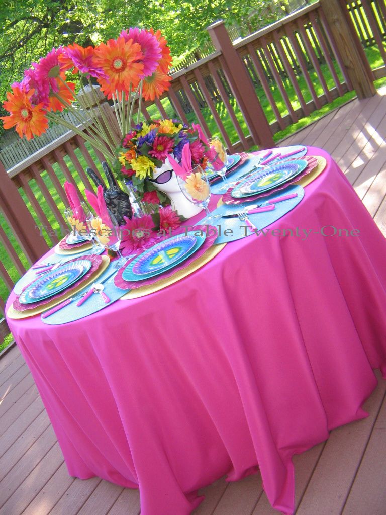 This is a TOTALLY GROOVY table! I love every single thing. The flatware arranged into a peace sign is brilliant. PEACE AND LOVE to you, Pinky