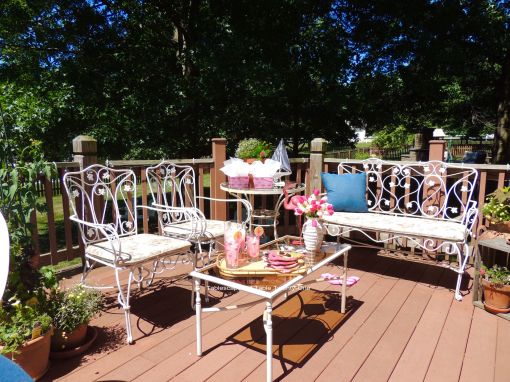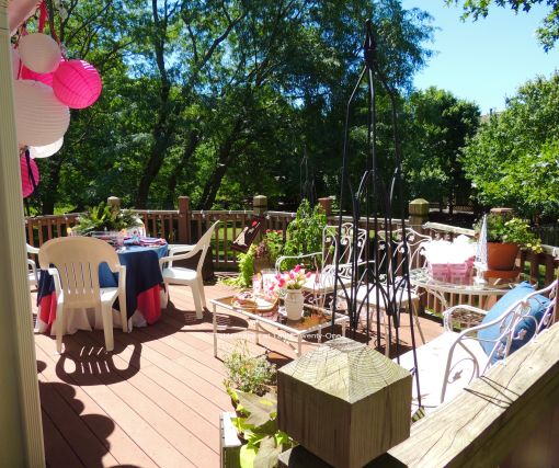 The other side of the deck is included in the party decor with a continuance of the color scheme.
