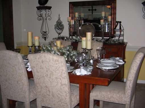 Christmas Eve 2009 brought a thick blanket of snow to the Kansas City area. What better way to celebrate it than to bring a few snowflakes inside to the dining room tablescape?