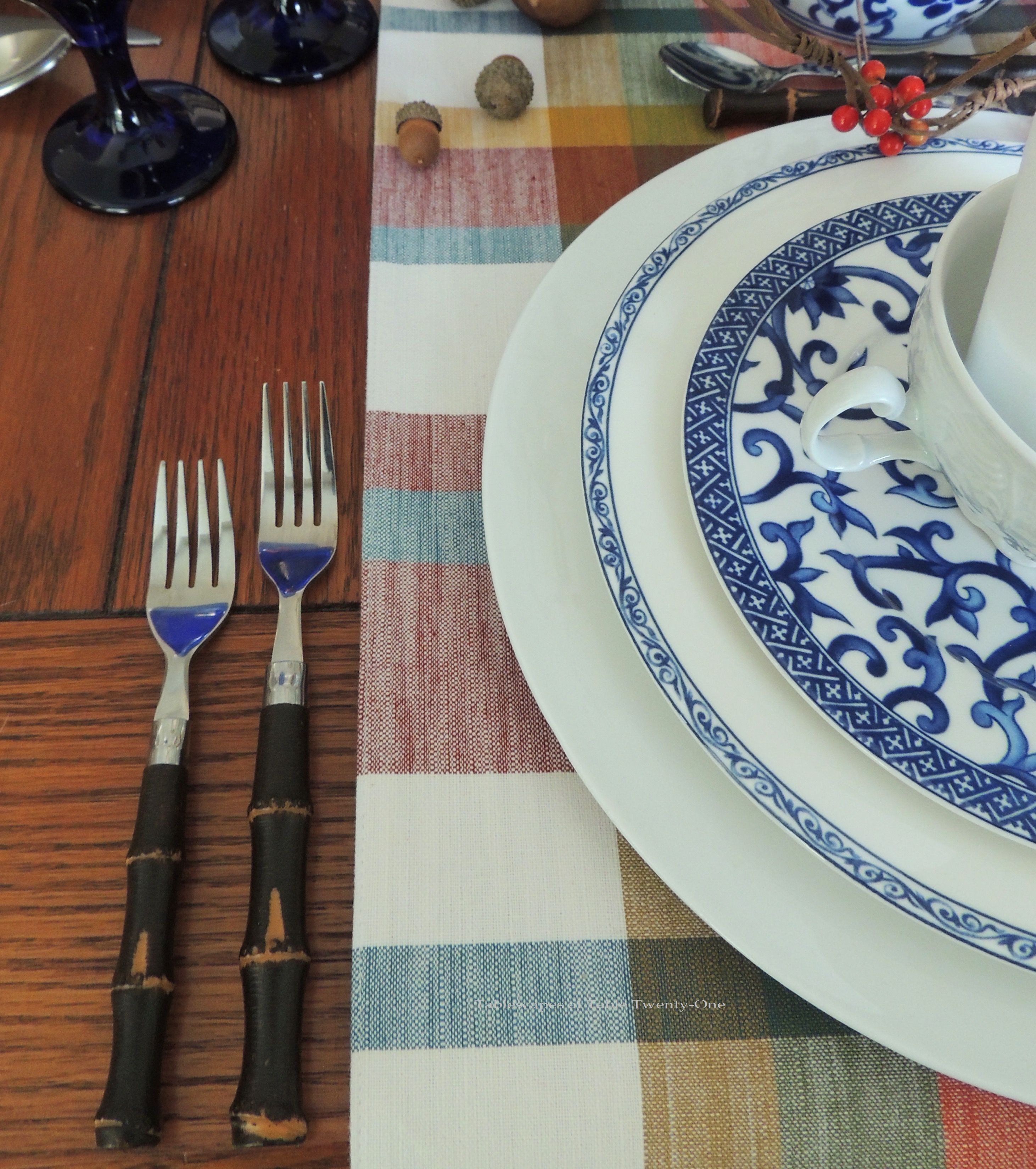 “Autumn Chinoiserie”, Tablescapes at Table Twenty-One, www.tabletwentyone.wordpress.com – faux bamboo flatware