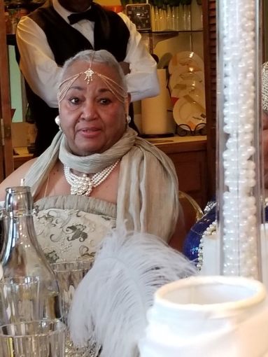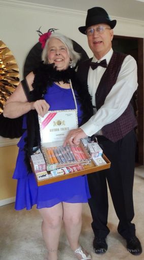 Special, HUGE thanks to: my friend/neighbor, Jane, for being the best cigarette girl a flapper could ask for; my friend/neighbor, Barbara, for mixing up those insanely potent drinks, whipping up a mean Mornay sauce for the Kentucky Hot Browns, and helping out so much in the kitchen; Barbara’s helpful husband, Lynn, for graciously taking time away from college basketball to take our group photo; my dear friend, Patrick, for creating such an extraordinary cake; my cousin, Dee, for all the props she contributed for the photo booth and for doing such a fabulous job on Mom’s makeup; my sister, Berishia, for the fortune cookies; my best friend of nearly 55 years, Sheri, for her precision serving skills and so many great photos despite the overcast skies, and; my husband, Ramon, for all the photos he took, his bartending prowess, being such an all-round good sport, and PAYING FOR THIS!!! 😉