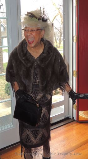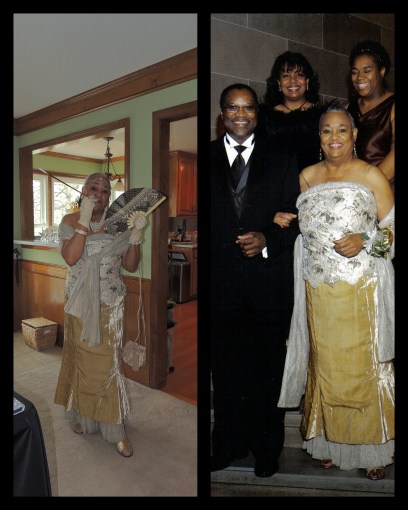 What a “babe”! Mom wears a 1920s-inspired gown designed and created by her granddaughter/my niece, Yvonne Chamberlain, for her to wear to the Governor’s Ball about 10 years ago. She still looks fabulous in it!!!
