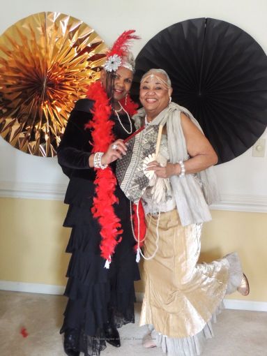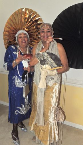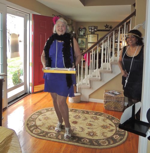 A couple of snappy “sips”: My “tomato” cousin, Dee Evans, and the flapper with the sexy “stilts”, Susan Wilson.