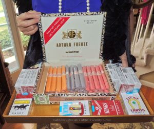 “Ain’t Misbehavin’” – Celebrating Mom’s 89th Birthday Gatsby-Style”, Tablescapes at Table Twenty-One, www.tabletwentyone.wordpress.com – Cigar box filled with bubble gum cigars and surrounded by candy cigarettes March 29, 2018March 29, 2018 / Alycia Nichols Share this: Click to share on Pinterest (Opens in new window) Pinterest Click to share on Facebook (Opens in new window) Facebook Click to share on X (Opens in new window) X Click to email a link to a friend (Opens in new window) Email More Click to print (Opens in new window) Print Click to share on Reddit (Opens in new window) Reddit Click to share on LinkedIn (Opens in new window) LinkedIn Like Loading...