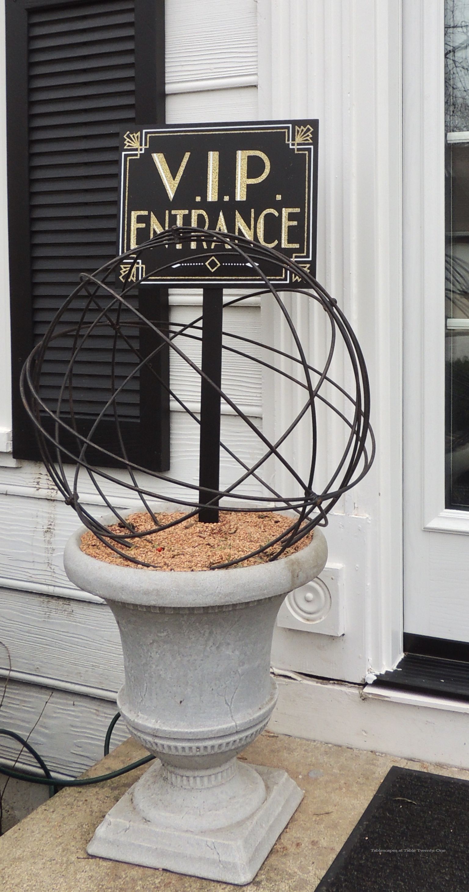 “Ain’t Misbehavin'” – Celebrating Mom’s 89th Birthday Gatsby-Style”, Tablescapes at Table Twenty-One, www.tabletwentyone.wordpress.com – A “V.I.P. Entrance” sign from Party City at the front door makes guest feel welcome right away!