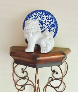 “Chinoiserie Chic – Classic Blue & White for Spring or Summer”, Tablescapes at Table Twenty-One, www.tabletwentyone.wordpress.com – foo dog on sconce