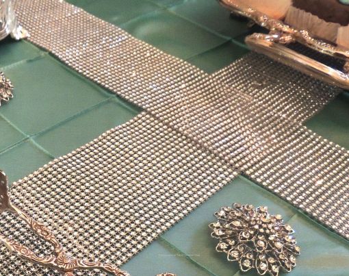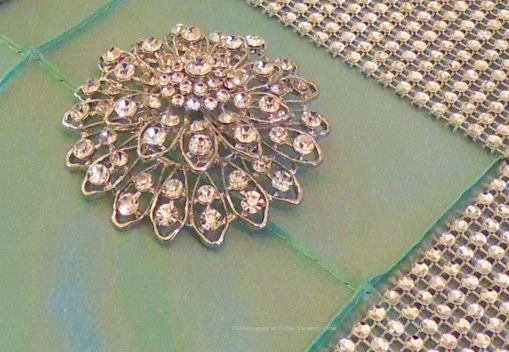 I created the menus using the same stationery as the invitations, strategically affixing tiny rhinestones for a bit more glitz. Each menu was outfitted with a sparkling “diamond” brooch.