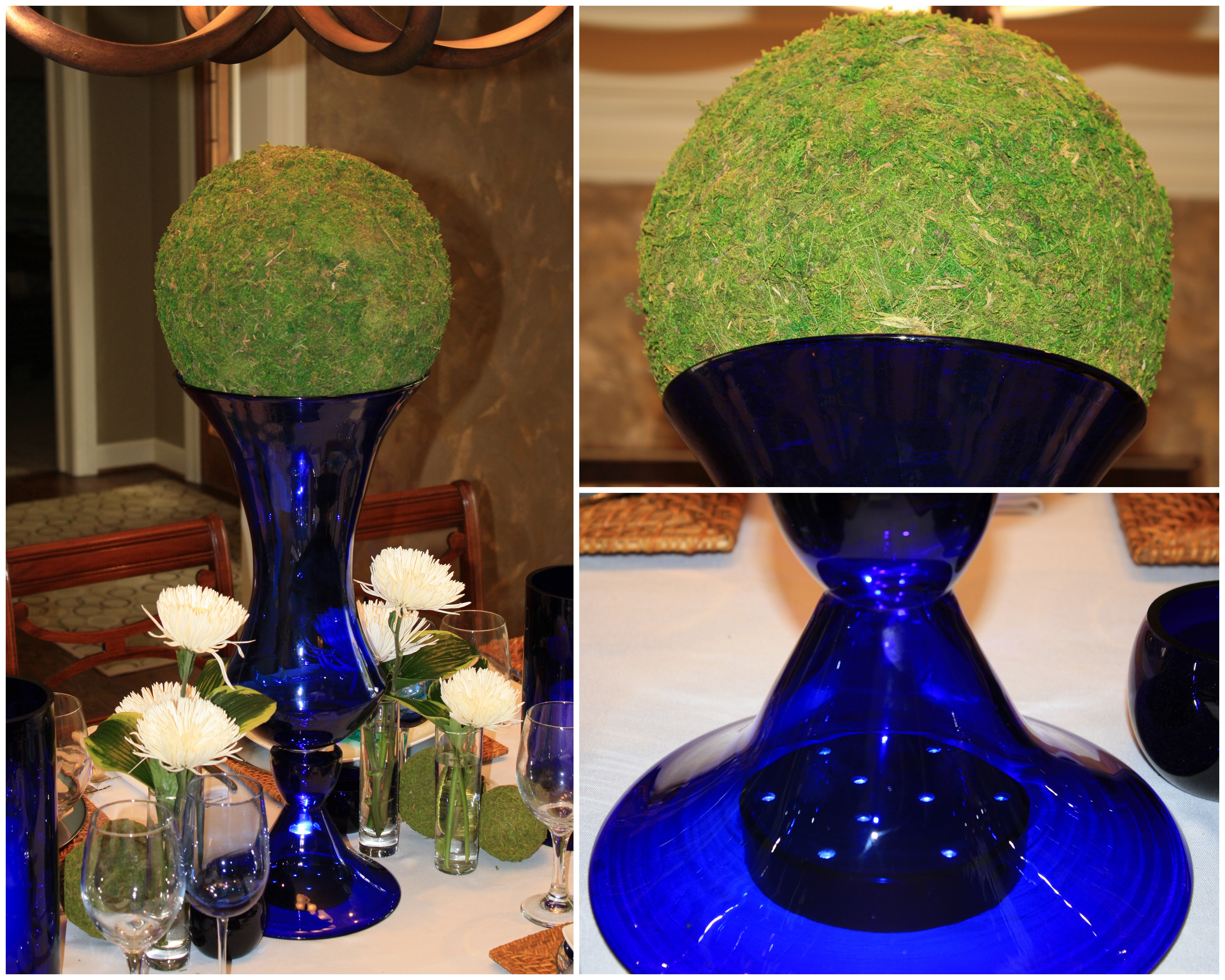 I couldn’t decided whether this reminded me more of a butterfly or an image you might see when looking into one of those old-fashioned kaleidoscopes. I also couldn’t decide whether I wanted to show this inside in the dining room or outside on the deck. So I’m going to show you both in a sort of side-by-side comparison! This might be helpful information as you come up with a Plan A for good weather and a “hope we don’t need it, but just in case we do” Plan B to bring it all inside in case of inclement weather conditions.