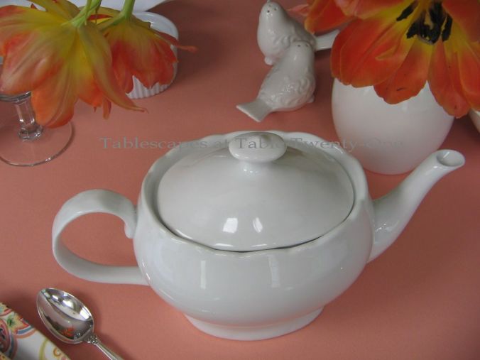 The guest table at this bucolic breakfast setting for four is dominated by the ultimate foundation piece: a full-length black & white checkered tablecloth! If all you have is an ugly folding table like I do, a full-length linen works magic!