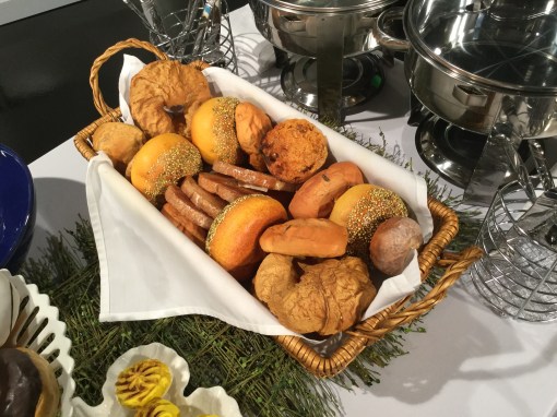 It’s important that food is beautifully presented and that guest tables are enjoyable. A mix of everyday and “fancy” pieces round out this table. While the croissants are served in a silver bowl, a loosely gathered mix of flowers and greenery in a whitewashed aluminum pitcher serves as the off-center centerpiece. A bovine menu chalkboard adds a little more of the theme to the table’s centerpiece.