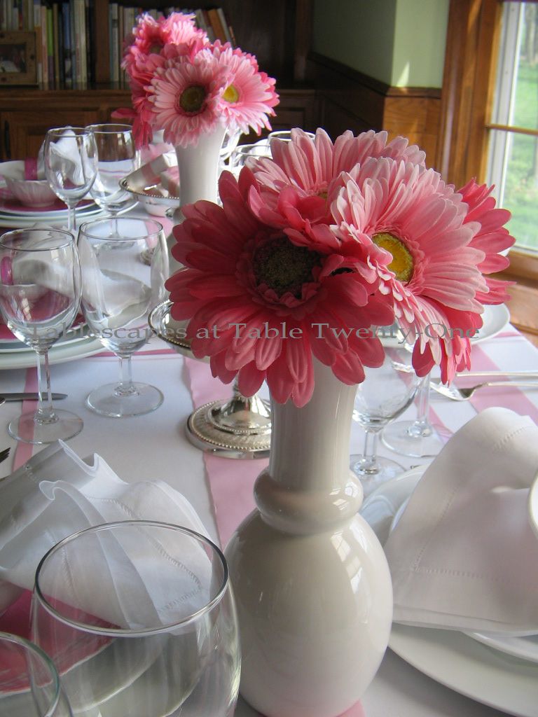 More tablescapes on this site using shades of pink that could serve to honor Breast Cancer survivors: