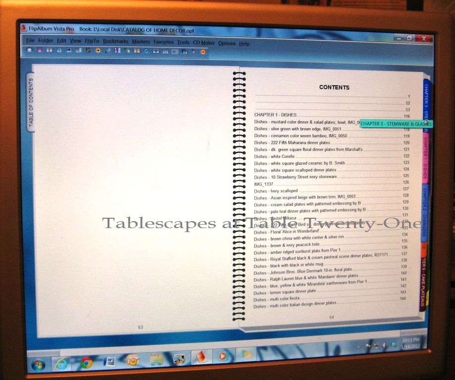 Building your own catalog to fit your specific needs with a Table of Contents, Index, thumbnail overview, and individual chapters is easy. I currently have 3127 pages in 41 chapters, which is up by about 1000 pages since my post “Hoarding: Buried In Dishes & Decor” back in January of 2012. But having things catalogued is one thing….putting all this crap somewhere is something altogether insanely different! (Yes, when you have to find storage for it, it flips from “treasures” to “crap” in a heartbeat! 🙂 ) Our home is relatively small, about 3100 sq. ft. on 3 finished floors. When it comes to the volume we’re talkin’ ’bout here, that 3100 sq. ft. may as well be 310!!! But here’s where it is: