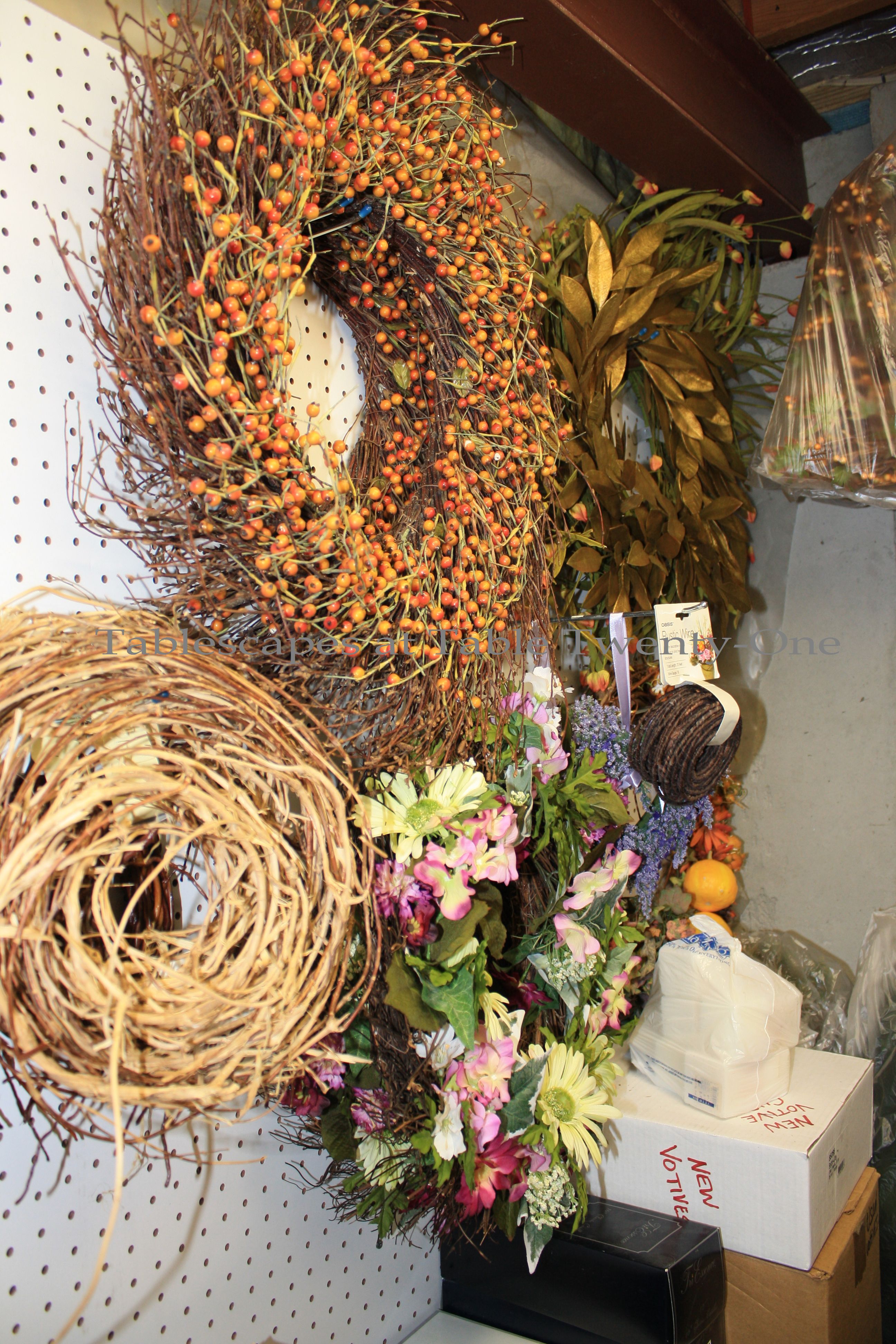 Here’s more of the stuff in this room. Storing spools of ribbon on pegboards is really convenient. Surprisingly, I know just where to go to get everything!