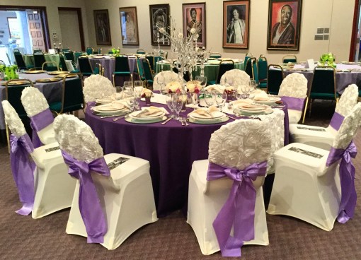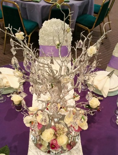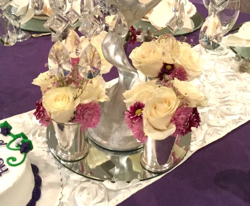 Each place setting had its own separate nosegay displayed in a bright pink fluted glass vase from Michaels. I like to do this for ladies luncheons and such. It’s such a personal gesture that guests really appreciate both during and after the event. All flowers for this segment were purchased at Aldi’s!