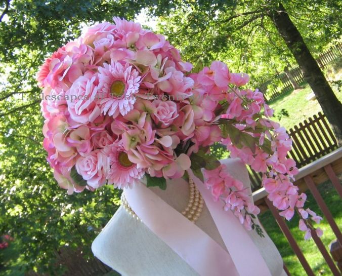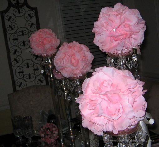 Who says bald can’t be absolutely beautiful? I admittedly spent a great deal of time working on this unique Breast Cancer Awareness centerpiece. I wanted to shout to the world that bald can indeed be beautiful, simple, sweet, sexy, exotic, erotic, and everything in between.