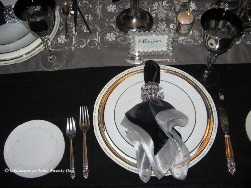I used these same floral branches in a totally different way in the recent post “Solemn Stars & Stripes“. White flowers instead of pink are used to keep the table from looking overly “sweet” and saturated.