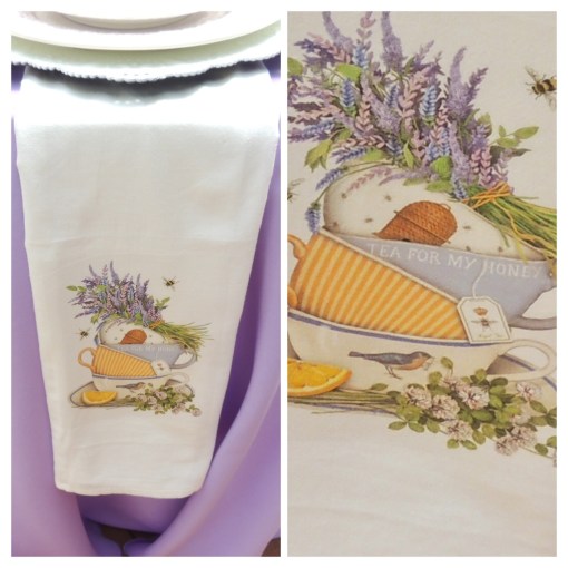 The inspiration for this tablescape came from these cool Mary Lake-Thompson flour sack towels I found at Home Finishings in Lee’s Summit, MO. I’ve often used towels as napkins, and these were perfect!