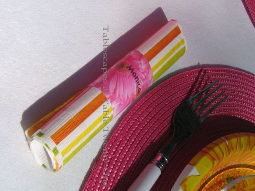 I’m quite fond of these stretchy Spandex tablecloths from LinenTablecloth.com because they go on easy, clean up nicely, and don’t have to be folded. Really! Just scrunch ’em up and store them without wrinkle worries! (I don’t get paid to say nice things about the company. I just want you to know where to find stuff!)