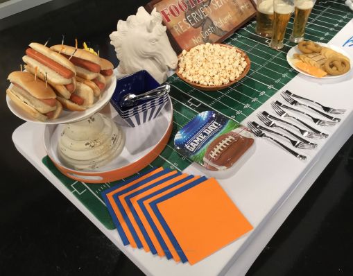 The buffet “table runner” is actually composed of 3 gridiron placemats that I previously used for “Hometown Pride: Kansas City Chiefs vs. Denver Broncos” and “Kansas City Chiefs in the Red Zone“.