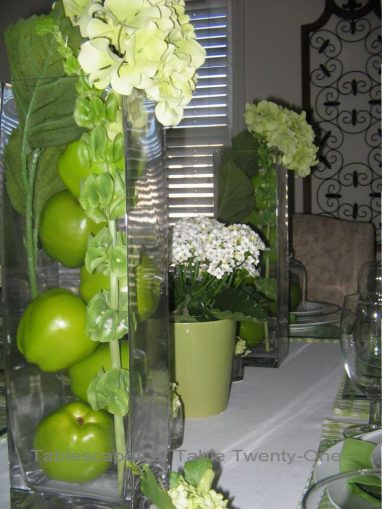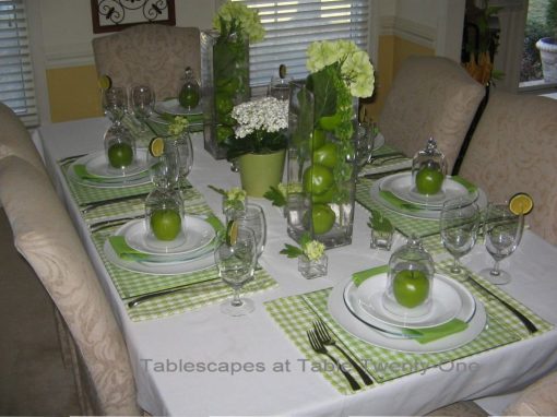 I have had lots of requests for pink & green tablescapes, but this is the first for an apple green & white tablescape. What better way to interpret that than with actual green apples!??!?!