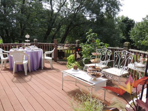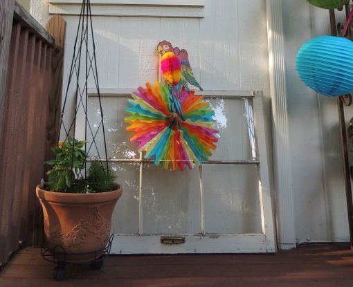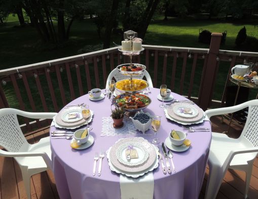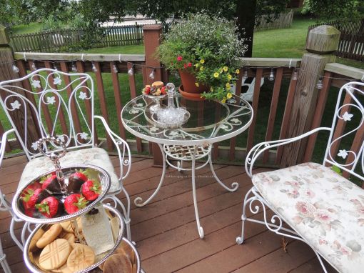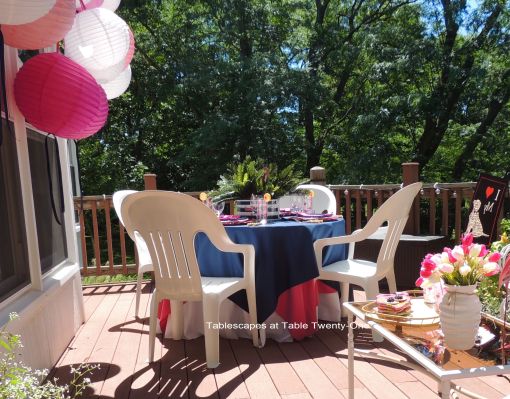 The other side of the deck is included in the party decor with a continuance of the color scheme.