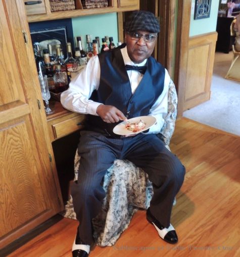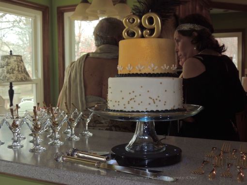 Special, HUGE thanks to: my friend/neighbor, Jane, for being the best cigarette girl a flapper could ask for; my friend/neighbor, Barbara, for mixing up those insanely potent drinks, whipping up a mean Mornay sauce for the Kentucky Hot Browns, and helping out so much in the kitchen; Barbara’s helpful husband, Lynn, for graciously taking time away from college basketball to take our group photo; my dear friend, Patrick, for creating such an extraordinary cake; my cousin, Dee, for all the props she contributed for the photo booth and for doing such a fabulous job on Mom’s makeup; my sister, Berishia, for the fortune cookies; my best friend of nearly 55 years, Sheri, for her precision serving skills and so many great photos despite the overcast skies, and; my husband, Ramon, for all the photos he took, his bartending prowess, being such an all-round good sport, and PAYING FOR THIS!!! 😉