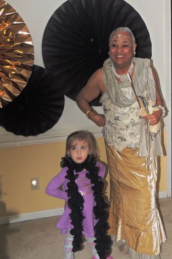 What a “babe”! Mom wears a 1920s-inspired gown designed and created by her granddaughter/my niece, Yvonne Chamberlain, for her to wear to the Governor’s Ball about 10 years ago. She still looks fabulous in it!!!