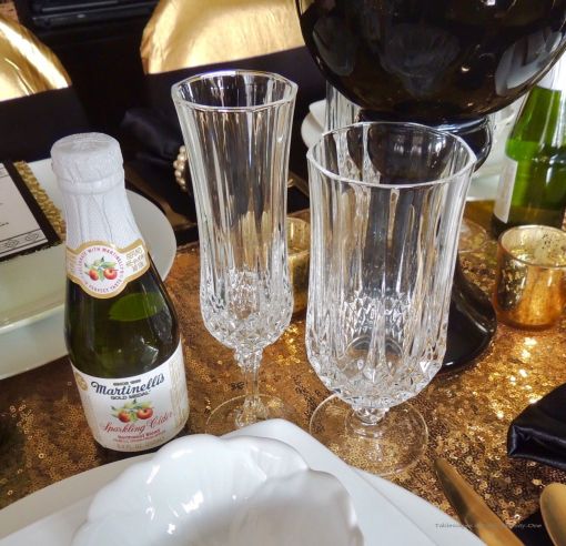 The fun stiletto heel glassware from Dollar Tree rounds out the place setting.