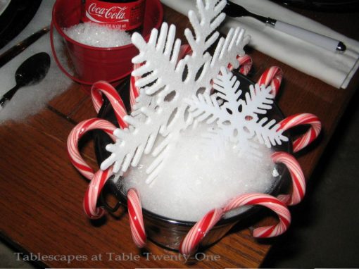 I used these same floral branches in a totally different way in the recent post “Solemn Stars & Stripes“. White flowers instead of pink are used to keep the table from looking overly “sweet” and saturated.