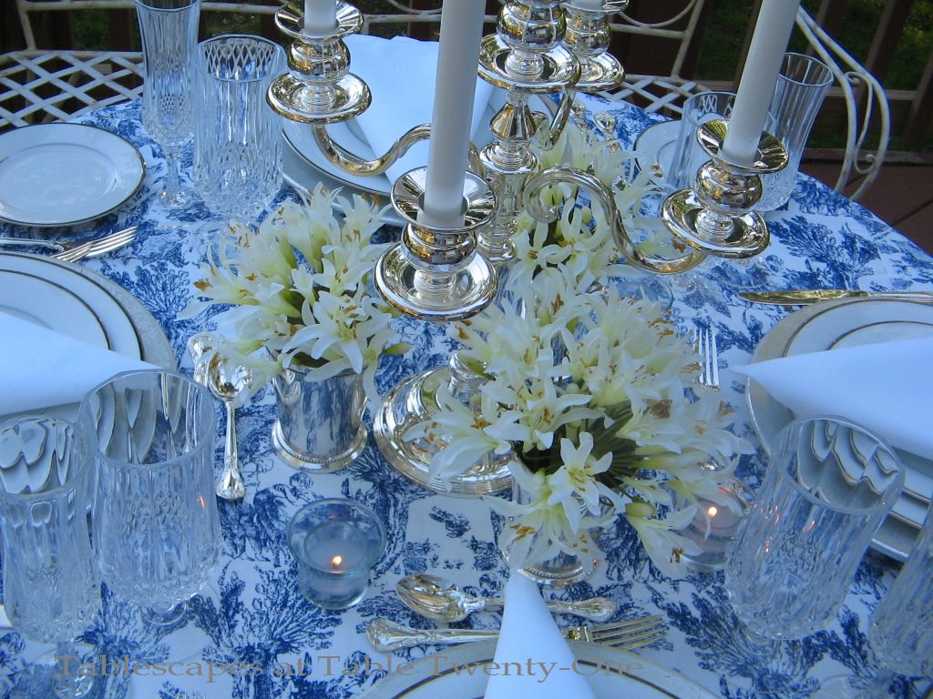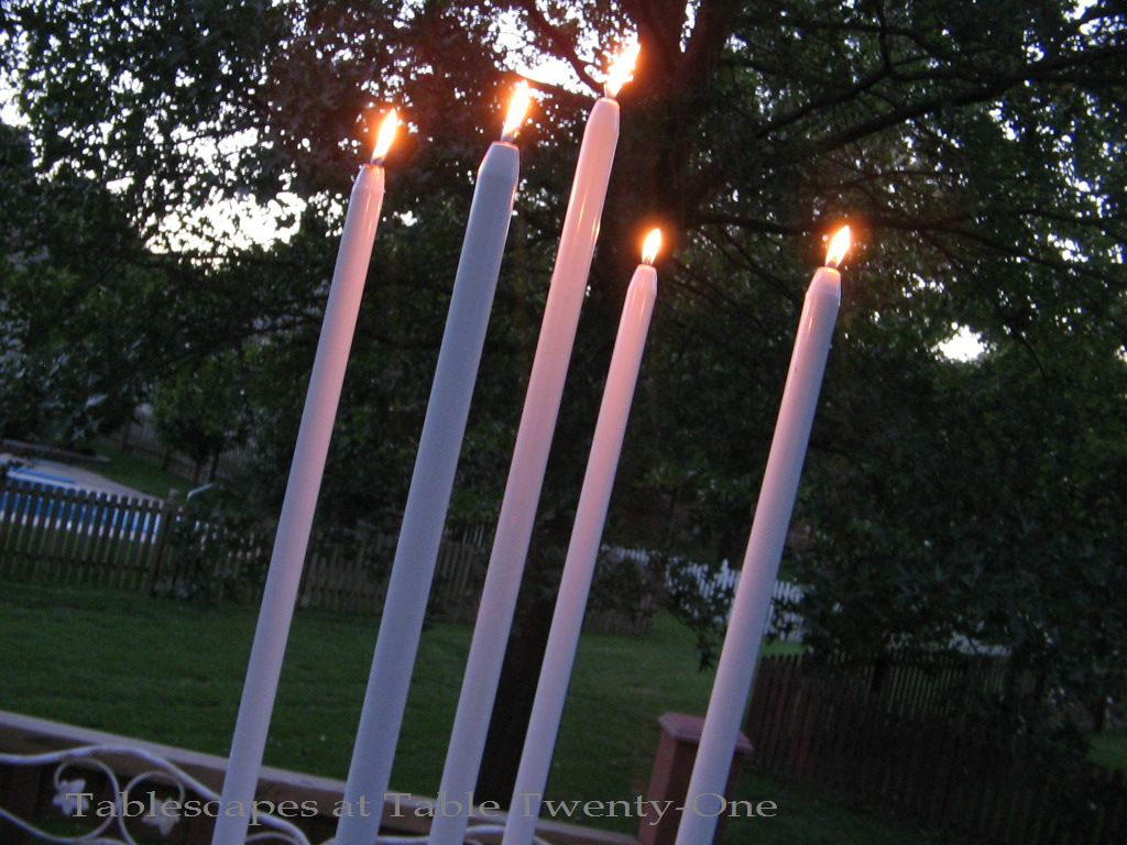 Satellite lighting included lots of votives and candle lamps created using silver Revere candlesticks topped with white silk shades. (I used a similar technique for the post “Should Have Put A Ring On It“.) I used the same bobeches on the lamps as on the candelabra.