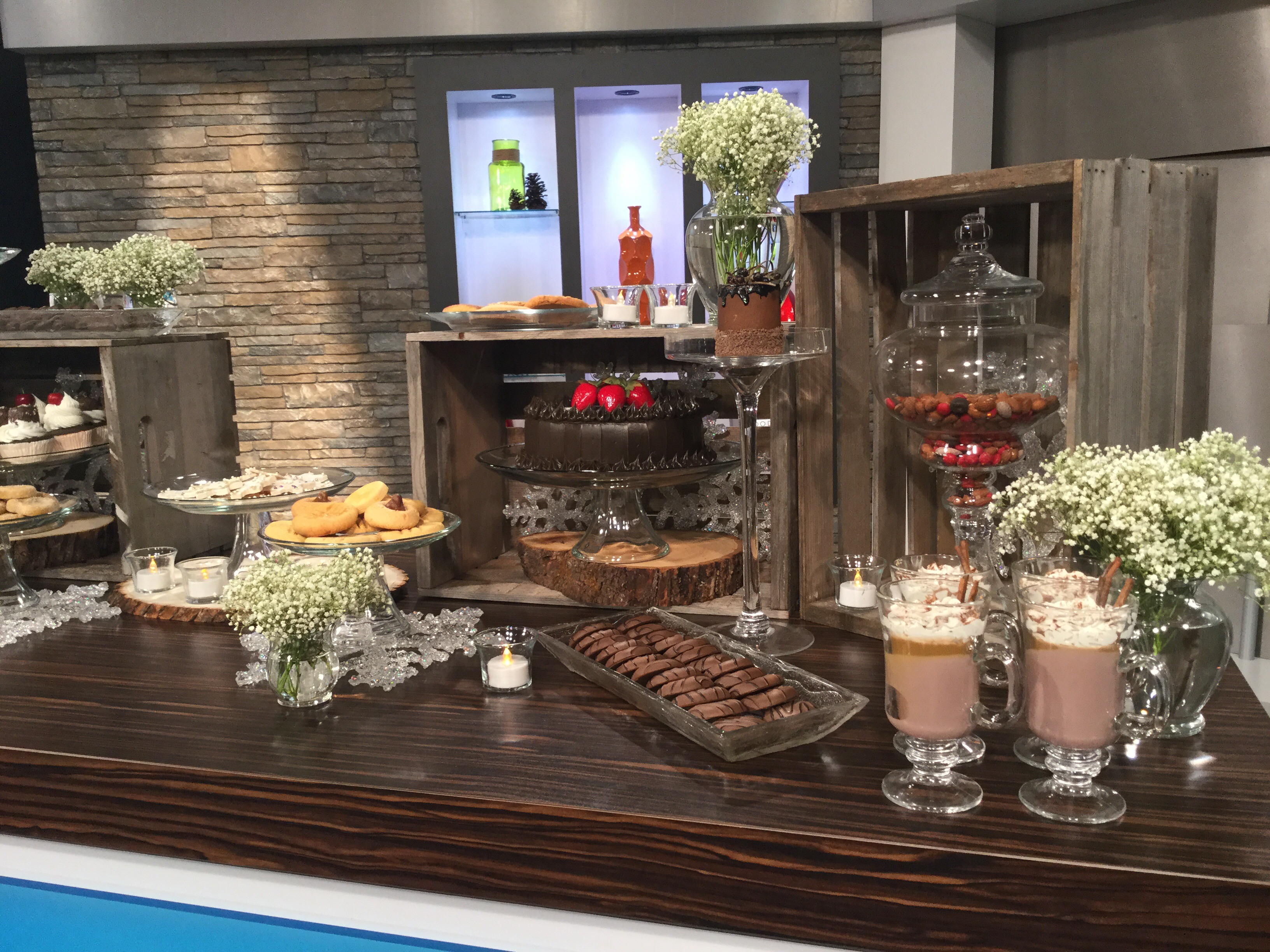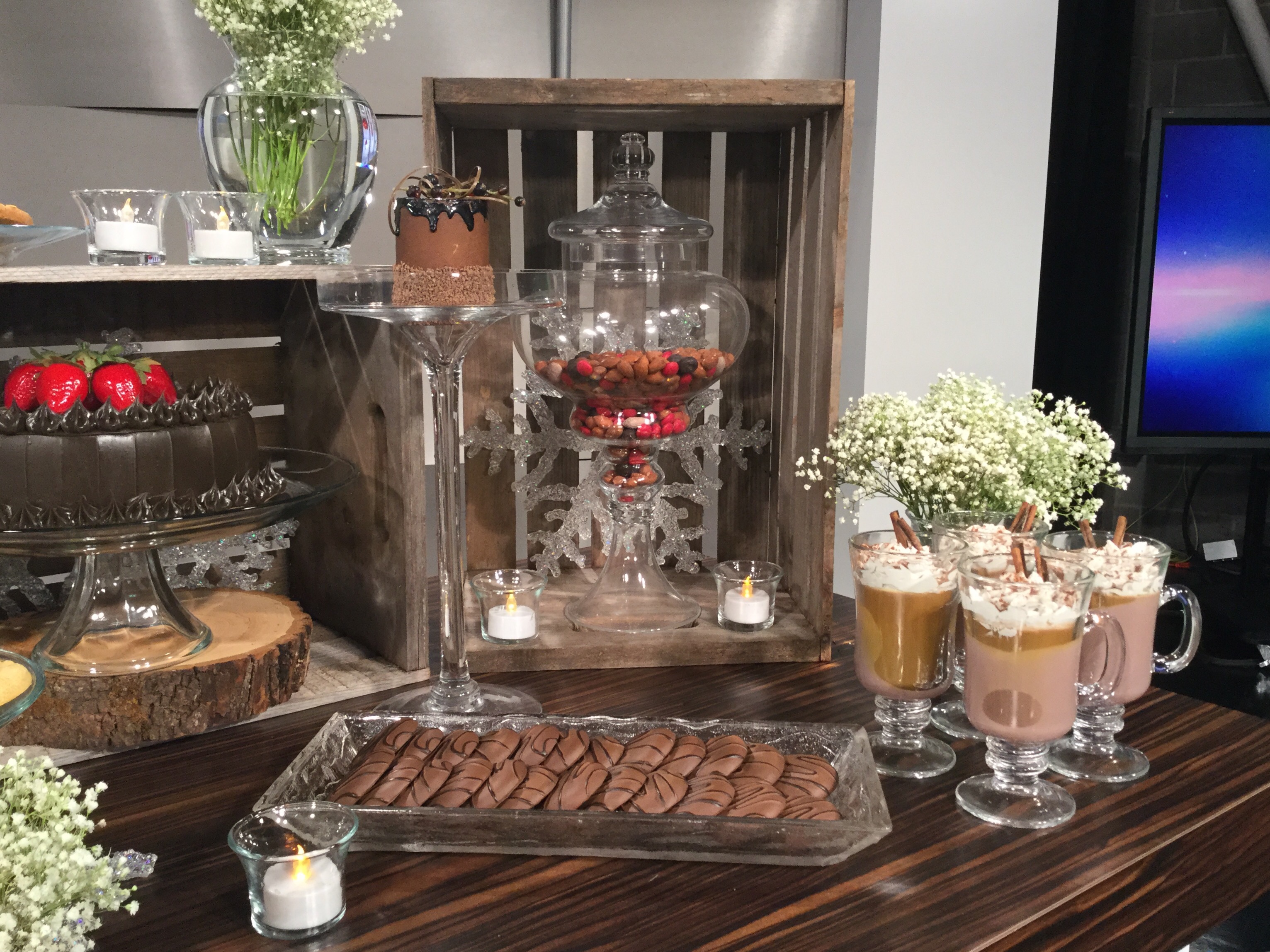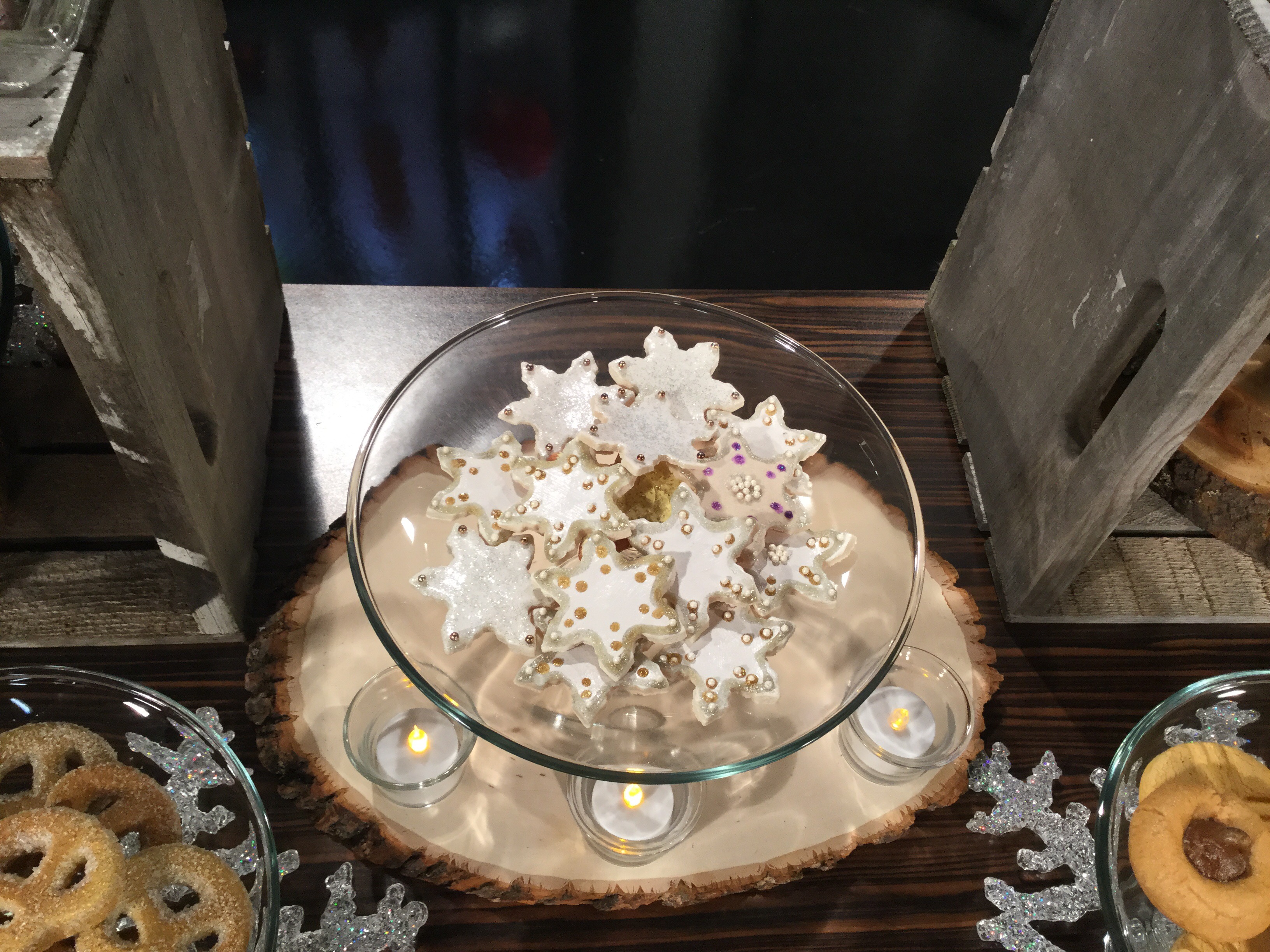 On the tea cart are faux bamboo spoons and gorgeous Mikasa “Daylight” cups & saucers. A Ralph Lauren pierced cake pedestal (Tuesday Morning) holds more of the Beau-coup favor boxes, this time unadorned and filled with cookies for guests to take home. Your choice: favors on the table at each individual place setting, or displayed en masse for guests to pick up on their way out the door.