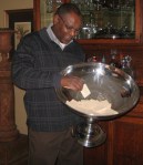 The towering white bamboo vase is from my favorite store….let’s all say it together….Z Gallerie! Mounds of seashells collected over the years add a little girth to the bottom of the centerpiece to balance it out with the top. Tucking a few orchid blooms and brightly hued cockscomb here and there amongst the seashells adds color and extends the floral theme. (I just love decorating with seashells!)
