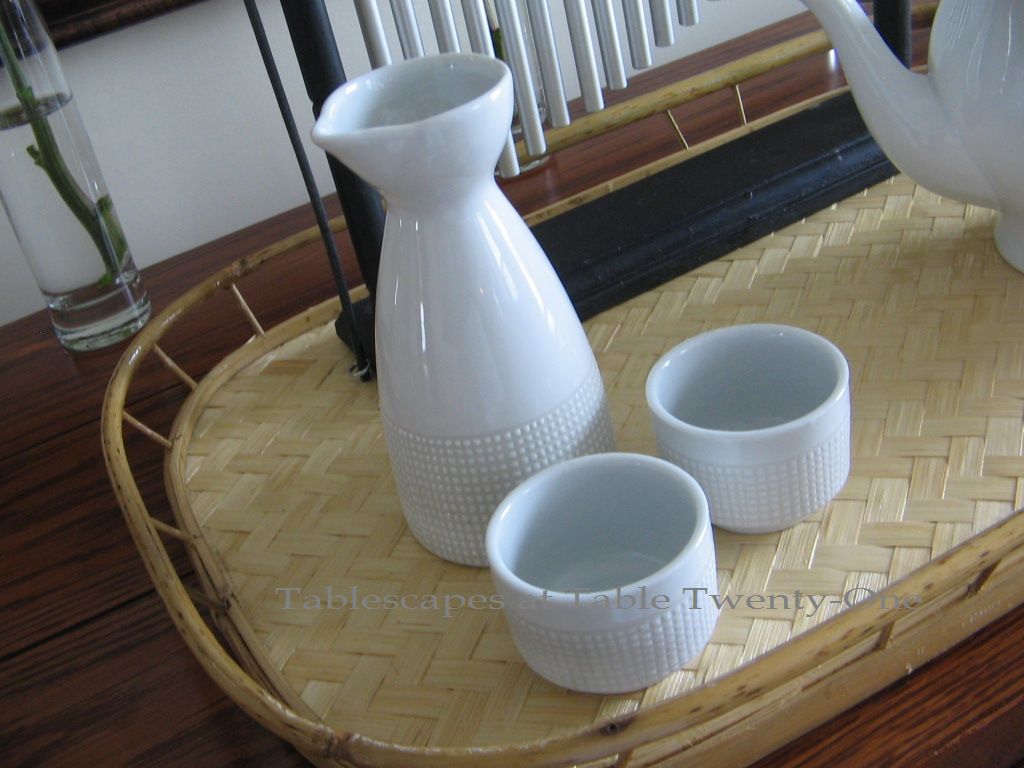 The simple white World Market sake set and teapot (T.J. Maxx) definitely lend Asian influence.